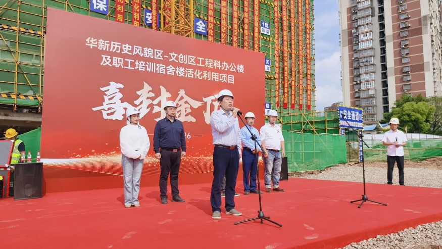 封頂大吉!華新歷史風貌區(qū)·文創(chuàng)區(qū)工程科 辦公樓及職工培訓宿舍樓活化利用項目 主體結構封頂