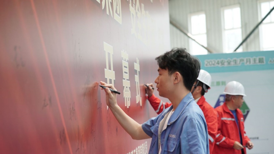 啟動(dòng)儀式最后,經(jīng)開投路面材料公司、文鼎公司職工代表分別作安全宣誓,全體參會(huì)人員依次在”人人講安全、個(gè)會(huì)應(yīng)急"主題展板上簽字。