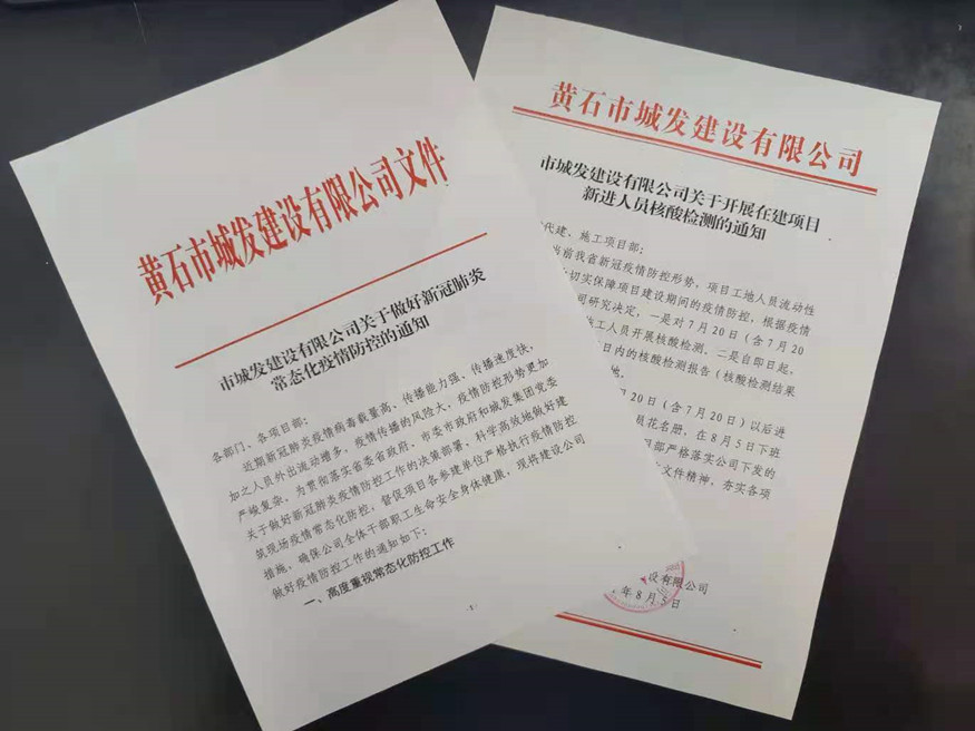 鑒于項(xiàng)目工地人員密集,流動(dòng)性大的特點(diǎn),8月5日,公司印發(fā)了《市城發(fā)建設(shè)有限公司關(guān)于開展在建項(xiàng)目新進(jìn)人員核酸檢測(cè)的通知》,為切實(shí)擔(dān)負(fù)起防疫抗疫責(zé)任,有效降低人員流動(dòng)引發(fā)的疫情傳播風(fēng)險(xiǎn),要求7月20日以來(lái)新進(jìn)項(xiàng)目員工須持3日內(nèi)合格核酸報(bào)告進(jìn)入項(xiàng)目工地。