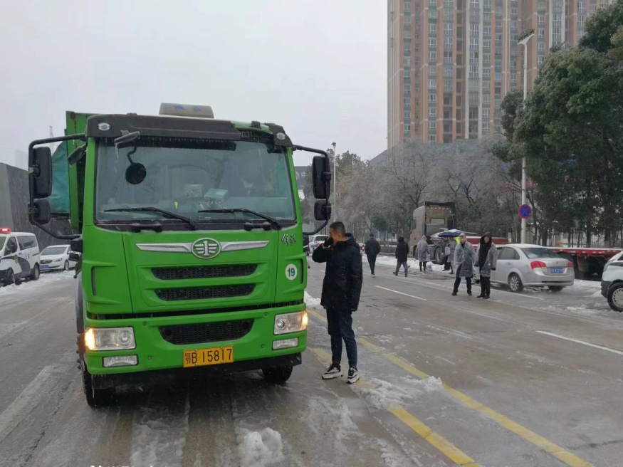 ▲城發(fā)·南岸春風項目由項目經(jīng)理帶隊,發(fā)動項目班組及工人共5人,使用鐵鍬、掃把、配合鏟車為西塞山區(qū)朱家嘴路段鏟雪除冰,有效保障了行人和行車安全,為項目物資供應和市民出行提供安全保障。